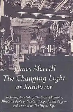 As Merrill matured, the polished and taut brilliance of his early work yielded to a more informal, relaxed, and conversational tone.[29][30] Already established in the 1970s among the finest poets of his generation, Merrill made a surprising detour when he began incorporating extensive occult messages into his work (although a poem from the 1950s, "Voices from the Other World," foreshadows the practice).[8][31] The result, a 560-page apocalyptic epic published as The Changing Light at Sandover (1982), documents two decades of messages dictated from otherworldly spirits during Ouija séances hosted by Merrill and his partner David Jackson. The Changing Light at Sandover is one of the longest epics in any language, and features the voices of recently deceased poet W. H. Auden, Merrill's late friends Maya Deren and Greek socialite Maria Mitsotáki, as well as heavenly beings including the Archangel Michael. Channeling voices through a Ouija board "made me think twice about the imagination," Merrill later explained. "If the spirits aren't external, how astonishing the mediums become! Victor Hugo said of his voices that they were like his own mental powers multiplied by five."[32]