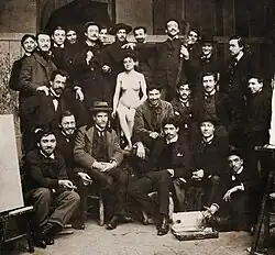 Students and model, believed to be one of Gérome's classes at the École des Beaux-Arts