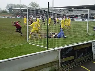 Sigere went on to sign for Lewes of the Conference South.[29] In his first season, he finished as the club's leading scorer, with 23 league goals from 41 starts,[30] helping the club win the Sussex Senior Cup and reach fourth place in the league, though the ground's inadequacies meant they could not take their place in the play-offs.[31] His 2006–07 season was disrupted by illness and knee problems,[32][33] and surgery on an ACL injury was to keep him out of the game for several months.[34][35] Loaned to Isthmian League Premier Division club Horsham in December 2007 for a month to regain match fitness, his first game for the club saw him score from long distance.[36] On his return to Lewes his appearances were sporadic, though a winning goal in the sixth minute of stoppage time against Thurrock in March 2008 put his club four points clear at the top of the table.[37] In April, his late goal against Dorchester Town confirmed Lewes as Conference South champions.[35]