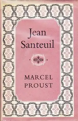 Jean Santeuil (French: [ʒɑ̃ sɑ̃tœj]) is an unfinished novel written by Marcel Proust. It was written between 1896 and 1900, and published after the author's death. The first French edition was published in 1952 by Gallimard. The first English version, translated from the French by Gerard Hopkins, was published in 1955 by Weidenfeld & Nicolson in the UK[1] and in 1956 by Simon & Schuster in the US.[2] It was first printed in three volumes, as the novel is over nine-hundred pages long.