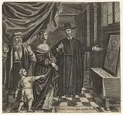 Jeremy Taylor with figures representing youth, maturity and old age by Pierre Lombart (1650)