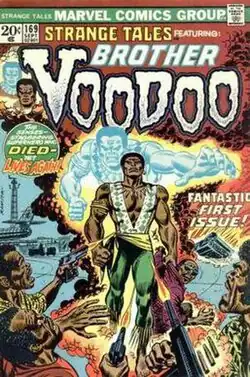 Dr. Jericho Drumm is a fictional character appearing in American comic books published by Marvel Comics. He first appeared in Strange Tales #169 (September 1973) as Brother Voodoo.[2] The character was created by Marvel publisher Stan Lee, writer Len Wein, and artist John Romita Sr. Since replacing Doctor Strange as Sorcerer Supreme in New Avengers #53 (July 2009), the character has been referred to as Doctor Voodoo,[3] a title originally assumed by his evil twin brother Daniel, whose ghost he controls.