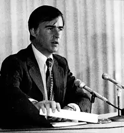 When Brown was in the process of starting his campaign, Jude Wanniski set up a meeting between him and Wall Street financiers, but Brown did not show up to the meeting, ultimately sticking to his negative beliefs about money in politics. Brown announced his candidacy on October 21, 1991. His first speech was plagiarized from a manifesto by speechwriter Richard Goodwin. He ran a populist campaign generally focused on corruption. He specifically advocated for campaign finance reform, congressional term limits, universal health care,[4] gun control, a flat income tax, environmentalism, cuts to military spending and property taxes, and he opposed nuclear power and free trade with Mexico.[1][2][5][6] His positions on gun control, healthcare, the flat tax, and free trade in 1992 were different from previous years; The New York Times wrote:[5]