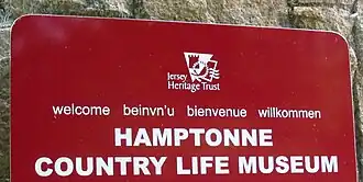 Jersey Heritage Trust welcome sign at Hamptonne