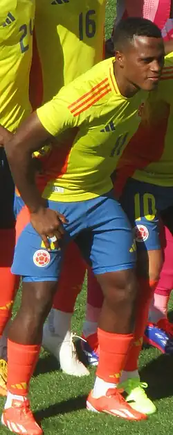 Arias scored his first goal for Colombia on 26 March 2024, scoring his side's second in a 3–2 win over Romania at the Metropolitano Stadium.[15] On 23 May, he was included in the squad for the 2024 Copa América.[16]