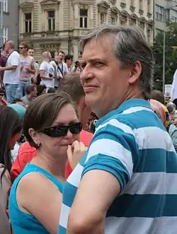 Jiří Dienstbier Jr. (born 27 May 1969) is a Czech politician, lawyer and the Senator for Kladno from 2011 to 2020, representing the Social Democratic Party (ČSSD).[1] He previously served as Minister for Human Rights, Equal Opportunities and Legislation in Bohuslav Sobotka's cabinet,[2] and at various points he has been Deputy Leader of ČSSD,[3] a member of the Chamber of Deputies, and shadow minister of Justice.[4] He was also the ČSSD candidate for the first direct presidential elections in the Czech Republic in 2013.[5][6] He left ČSSD, which had changed its name to Social Democracy, in June 2025.[7]