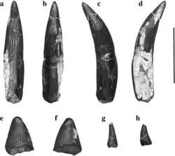 2. ^ Sereno, Paul C.; Beck, Allison L.; Dutheil, Didier B.; Larsson, Hans C. E.; Lyon, Gabrielle H.; Moussa, Bourahima; Sadleir, Rudyard W.; Sidor, Christian A.; Varricchio, David J.; Wilson, Gregory P.; Wilson, Jeffrey A. (1999-11-12). "Cretaceous Sauropods from the Sahara and the Uneven Rate of Skeletal Evolution Among Dinosaurs" (PDF). Science. 286 (5443): 1342–1347. doi:10.1126/science.286.5443.1342. ISSN 0036-8075. PMID 10558986.