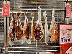 Jinhua ham (Chinese: 金華火腿) is a type of specialty dry-cured ham named after the city of Jinhua, where it is produced, in Zhejiang province, China.[1][2] The ham is used in Chinese cuisines to flavor stewed and braised foods as well as for making the stocks and broths of many Chinese soups. The ham was awarded first prize in the 1915 Panama International Merchandise Exhibition.[3]
