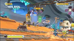 Joe Danger 2: The Movie is a pseudo-sequel to its predecessor. In it, stuntman Joe Danger has gained favor with a movie director in Hollywood and is brought on to perform all the stunts on set.[1] The fictional movie sequences consist entirely of cliche action stunts, and so he must perform chase scenes on mini carts, skis, and police bikes.[1] This spans 25 stages across five acts, with a director's cut unlocking once all stages are complete. This gives alternative stages and scenarios to play.[2] Secondary objectives can be completed in each stage. Each level has collectable letters spelling D-A-N-G-E-R, similar to the Tony Hawk's Pro Skater games and the collection of the letters S-K-A-T-E. Other secondary objects are themed according to the stage and what the scene for the movie requires.[3]