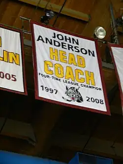 Chicago Wolves banner honoring Anderson's coaching history with the franchise
