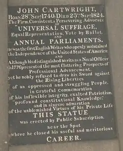 28. ^ Historic England. "Statue of John Cartwright (Grade II) (1244104)". National Heritage List for England.
