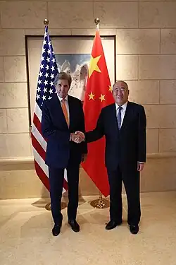 - ^ 云涌 (July 18, 2023). "中美部分会议气氛紧张!美国特使克里:气候合作可能重新定义中美关系". FX168财经报社. Archived from the original on July 18, 2023. Retrieved July 18, 2023.