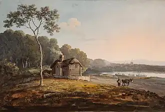 Laporte's Perdita discovered by the Old Shepherd was engraved by Bartolozzi, and his Millbank on the River Thames by Francis Jukes.[2][5]