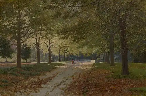 John Mather was also noted as amongst the artists marching along the road to Heidelberg in 1885, the first organised effort in Melbourne to form a group for landscape painting. The artists included Arthur Streeton, Walter Withers, John Longstaff, Fredrick McCubbin, E. Phillips Fox, Louis Abrahams, Jane Sutherland, Tudor St George Tucker, J. Llewellyn Jones, Tom Humphries, and Fredrick Williams.[54]