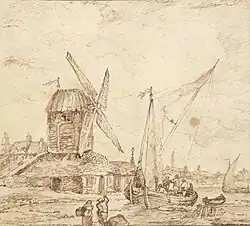 Windmill and Sailing Boats (1813), an early sketch in graphite
