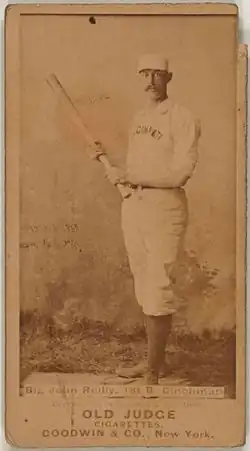 John Good Reilly (October 5, 1858 – May 31, 1937), nicknamed "Long John", was an American first baseman in Major League Baseball who played for the Cincinnati Stars (1880) and the Cincinnati Red Stockings/Reds (18831891). In 1888, he hit 13 home runs with 103 RBI and a .321 batting average. During and after his baseball career, Reilly was a commercial artist for the Strobridge Lithographing Company.