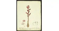 John Templeton's interest in botany began with this experimental garden laid out according to a suggestion in Rousseau's 'Nouvelle Heloise' and following Rousseau's 'Letters on the Elements of Botany Here he cultivated many tender exotics out of doors (a list provided by Nelson[11] and began botanical studies which lasted throughout his life and corresponded with the most eminent botanists in England Sir William Hooker, William Turner, James Sowerby and, especially Sir Joseph Banks, who had travelled on Captain James Cook's voyages, and in charge of Kew Gardens. Banks tried (unsuccessfully) to tempt him to New Holland (Australia) as a botanist on the Flinders's Expedition with the offer of a large tract of land and a substantial salary. An associate of the Linnean Society, Templeton visited London and saw the botanical work being achieved there. This led to his promotion of the Belfast Botanic Gardens as early as 1809, and to work on a Catalogue of Native Irish Plants, in manuscript form and now in the Royal Irish Academy, which was used as an accurate foundation for later work by succeeding Irish botanists. He also assembled text and executed many beautiful watercolour drawings for a Flora Hibernica, sadly never finished, and kept a detailed journal during the years 1806–1825 (both now in the Ulster Museum, Belfast).[1] Of the 12000 algal specimens in the Ulster Museum Herbarium about 148 are in the Templeton collection and were mostly collected by him, some were collected by others and passed to Templeton. The specimens in the Templeton collection in the Ulster Museum (BEL) have been catalogued. Those noted in 1967 were numbered: F1 – F48.[12] Others were in The Queen's University Belfast.[13] All of Templeton's specimens have now been numbered in the Ulster Museum as follows: F190 – F264; F290 – F314 and F333 – F334.