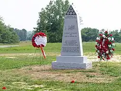 A memorial to Nathan Bedford Forrest and John W. Morton in Brices Cross Roads National Battlefield Site.