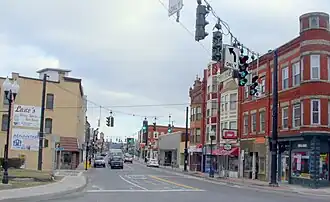 Johnson City Historic District is a national historic district in Johnson City, New York. It encompasses 183 contributing buildings and 1 contributing site in a mixed, residential, commercial, and industrial core of Johnson City. It developed between about 1888 and 1966, and includes notable examples of Romanesque Revival, Gothic Revival, Colonial Revival, and Streamline Moderne style architecture. Located in the district are the previously listed Goodwill Theatre, United States Post Office, and Your Home Library. Other notable contributing resources include the Endicott-Johnson Athletic Association East Branch Recreational Center (1947), St. James Roman Catholic Church Complex (1914–1950), Ash Block (c. 1901), Tacoma Block (1892, 1945), Rich Block, Dawson Block (1898–1899), Woolworths (c. 1937), Men's Quality Shop (1966), Red Robin Diner (1950, 1959), Thompson Hall (1951), Sarah Jane Johnson Methodist Church (1927), Charles F. Johnson, Jr., House (1919), Endicott-Johnson's Pioneer Annex (1916), Endicott-Johnson's Jigger Factory (1926), Endicott-Johnson's Sunrise Building (1929), Eagle Felt Mill (1898), Ansco Factory and Gate House (1947), Endicott-Johnson's Medical Facility (1918), Endicott-Johnson's Victory Factory (1919-1920), Endicott-Johnson's New Toe Box Factory (1914), Endicott-Johnson's Firehouse (1916), and the Village Hall and Fire Station (1899).[2]
