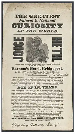 4. ^ Joice Heth Poster, 1835.