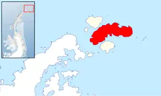 Joinville Island (63°15′S 55°45′W / 63.250°S 55.750°W) is the largest island of the Joinville Island group, about 40 nautical miles (74 km; 46 mi) long in an east–west direction and 12 nautical miles (22 km; 14 mi) wide, lying off the northeastern tip of the Antarctic Peninsula, from which it is separated by the Antarctic Sound.[1]