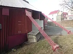 Being located on the site of an old brickyard, the architecture took advantage of the hillside and dug the venue deep into the hill. This also resulted in the venue having a highly asymmetric shape, with tall spectator stands on the one side and nearly none on the other.[7] The arena had a capacity for 4,450 spectators, of which 3,078 could be seated. It also featured nine luxury suites.[18] The asymmetrical shape and retrofitted roof gave the arena several undesirable traits. The construction of the roof contributed to poor ice quality. During its final years, it was also considered severely outdated. The stands were known to be steep, diminishing accessibility, complicating logistics and hampering even able-bodied spectators.[19]