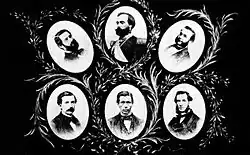 Mariano Ignacio Prado and his "Cabinet of Talents": José Gálvez, José María Químper, Manuel Pardo, José Simeón Tejeda and Toribio Pacheco y Rivero.