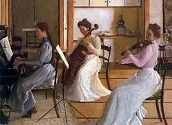 Painting of his wife and her sisters, Lilla Cabot Perry, The Trio (Alice, Edith, and, Margaret Perry) by their mother, Lilla Cabot Perry, ca. 1898–1900