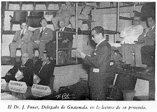 During the government of Juan José Arévalo (1945–1951), Funes was the Head of the Venereology Section and Director of the Venereal Disease and Sexual Prophylaxis Hospital[4][5] both divisions of the Ministry of Public Health and Social Assistance of Guatemala. Around 1950, he became Vice-Chairman of the World Health Organization's Syphilis Study Commission, and in 1954 he directed the National Anti-Venereal Campaign of Guatemala.[6] From 1948 to 1956, he served as Special Consultant with the Venereal Disease Division, Bureau of State Services, USPHS,[7] and in 1962, together with physicians Mariano Castillo and Rodrigo Sánchez, he founded the Guatemalan Academy of Dermatology, Syphilology and Leprology,[8] currently the Guatemalan Academy of Dermatology.[9]