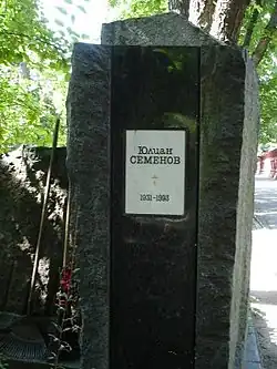 After the sudden stroke in 1990, Semyonov became bedridden and could not return to work ever again. Y.S. Semyonov died on 15 September 1993 in Moscow. He was buried in the Novodevichy Cemetery. The writer's disease and death are controversial, due to a possibility of him being assassinated.[3]