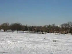 Juniper Valley Park in winter, facing west towards Manhattan.