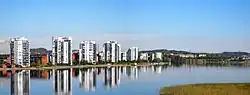 Jyväsjärvi is surrounded by urban area on all sides. Residential areas around the lake include Lutakko, Äijälä and the Ainola, Ainolanranta and Suuruspää areas of Kuokkala. Downtown Jyväskylä, Tourula and Halssila are separated from the lake by highways and railroads.[1]