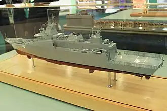 In the 1990s, the Royal Malaysian Navy identified the need to replace their ageing patrol boats. These 31 m long vessels built by Vosper Ltd with a displacement of 96 tons had been in service since the 1960s.[1] After receiving government approval, the Malaysian Navy ran a competition for the design in 1996, planning to purchase 27 vessels over 15 years. The specifications aimed for a design with a displacement of 1,300 tons and an overall length of 80 m. It was already noted at that time that this resembled full-fledged corvettes rather than patrol vessels, but the eventual winning bid would turn out to be even larger.[2] The Australian bid proposed a Joint Patrol Vessel, to be designed by Australian Transfield Shipbuilding and subsequently purchased by the Malaysian Navy as well as the Royal Australian Navy.[3] Other contenders were the German Naval Group consortium as well as British shipyards Vosper Thornycroft and Yarrow Shipbuilders.