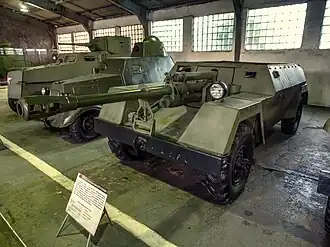 The KSP-76, also known by its factory designation GAZ-68, was a Soviet wheeled assault gun that began development in 1943.[1] It mounted a 76 mm divisional gun M1942 (ZiS-3) gun on a lightweight chassis in an attempt to provide support for scout and airborne units.[1] The light chassis proved unable to withstand repeated firings of the gun and the project never got beyond the prototype stage.[1]