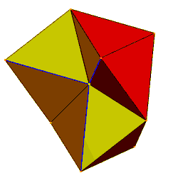 Six tetrahedra whose vertices meet at the center. Blue edges are doubled with pairs of faces hidden.