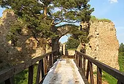 The medieval castle called Vrškamýk or just Kamýk is now a ruin. It was abandoned in the second half of the 14th century and first described as a ruin in 1569. Only a part of the inner walls has been preserved. Near the church is a lookout tower, also called Vrškamýk.[8][9]