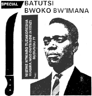 An article in the sixth issue, published December 1990, was the first publication of the "Hutu Ten Commandments", which decreed that Hutus who interacted with Tutsis were traitors.[2][6] The propaganda of Kangura targeted women in particular, accusing Tutsi women of seducing Hutu in order to spy on them and mollify them, but only bearing the children of other Tutsi.[7] Another article of December 1990 claimed that the Tutsi were prepared for a war. The back of issue six was a picture of French president François Mitterrand with the caption, "It is during hard times that one comes to know one's true friends."[8]