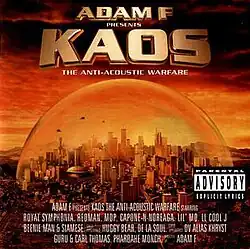 Kaos: The Anti-Acoustic Warfare is the second studio album by English musician Adam F. It was released on 10 September 2001 through EMI. The album moves away from the drum and bass music from Colours (which Adam F described as "a phase"), and instead features hip hop music with almost every song featuring a vocalist.[1] Upon release, the album reached number 44 on the UK Albums Chart.[4]