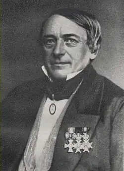 Hagenow was born in Langenfelde, Vorpommern, the eldest of nine children born in the manor of Friedrich Christoph Karl Hagenow and Marie Mentz. They were made nobility in 1802. The young Hagenow studied natural sciences at the University of Greifswald where he was influenced by Gustav Salomon Tillberg. After his father died, his mother married Tillberg. Hagenow initially studied agriculture and then went to Dargun, Mecklenburg where he worked as an adjunct in the judicial office. He worked as a military volunteer in 1817–18 with the Garde-Schützen-Bataillon in Berlin but also attended lectures in the Friedrich-Wilhelms-Universität. He moved to Rügen in 1818 to the Poggendorf Estate near Schaprode and married a relative, Elisabeth Karoline Hennings, the next year. They would have five children. He began to study West Pomeranian megalithic burials and also took an interest in the birds of the region. He found nearly 239 graves in the region.[1] In 1830 he discovered a skeleton in a marl pit which drew a lot of attention. He received an honorary doctorate in 1830 from the University of Greifswald. In 1832 he setup Germany's first factory to produce chalk slurry (whiting or calcium carbonate) with equipment that he designed himself.[2] He also gave lectures in applied mathematics at the Agricultural Academy in Eldena between 1835 and 1838. After the death of his mother in 1844 he inherited Nielitz estate. He began to use trigonometrical survey techniques to produce a map of Pomerania and Rügen in 1839. He sold off his factory in 1850 and spent all his time on scientific research. In 1851 he published a work on the Bryozoans of Mastricht cretaceous which he examined in the company of Charles Lyell, making use of an instrument he designed to draw fossils accurately. He called this camera lucida like instrument the dicatopter and patented it in 1851. He presented the dicatopter at the Vienna meeting of the Academy of Sciences in 1854. Failing eyesight led to a reduction in his paleontology work and he shifted to archaeology and history. He studied heraldry and began to reproduce old seals.[3][4]