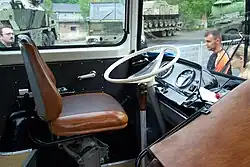 Karosa ŠD 11 is completely different from its predecessor, Škoda 706 RTO-LUX, which had engine in front and two doors. ŠM 11 is model of Karosa Š series. It is derived from Karosa ŠM 11 city bus, and also unified with intercity bus Karosa ŠL 11. Body is semi-self-supporting with frame and engine with manual gearbox in the middle, between the wheels. Only rear axle is propulsed. Front axle is independent, rear axle is solid. All axles are mounted on air suspension. On the right side is one door. Inside are used high padded seats. Driver's cab is not separated from the rest of the vehicle.