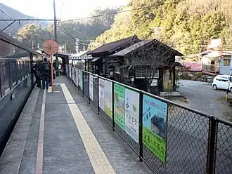Kawaneonsen-Sasamado Station (川根温泉笹間渡駅, Kawaneonsen-Sasamado-eki) is a railway station in the city of Shimada, Shizuoka Prefecture, Japan, operated by the Ōigawa Railway. Its location was formerly the town of Kawane, which was merged into Shimada in 2008.