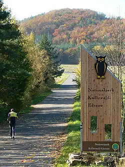The Kellerwald-Edersee National Park (German: Nationalpark Kellerwald-Edersee), CDDA-No. 318077)[2] in the North Hessian county of Waldeck-Frankenberg is a national park, 57.38 km²[1] in area, that lies south of the Edersee lake in the northern part of the Kellerwald low mountain range in the German state of Hesse. Since 25 June 2011 the beech forested area of the national park has been part of the UNESCO World Heritage Site known as Ancient and Primeval Beech Forests of the Carpathians and Other Regions of Europe, because of its testimony to the ecological history of the beech family and the forest dynamics of Europe since the Last Glacial Period.[3]