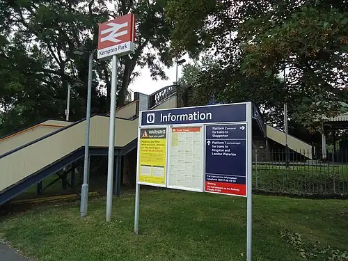 1. ^ "Improved services at new-look Kempton Park". South West Trains. 3 May 2006. Archived from the original on 23 February 2009. Retrieved 22 March 2009.