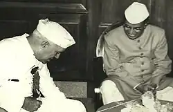 Kengal Hanumanthaiya and Jawaharlal Nehru during the inauguration of the Vidhana Soudha, the Karnataka State Legislature Building