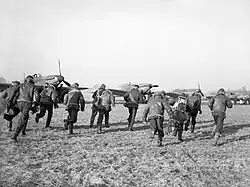 Pilots of No. 87 Squadron running for their Hawker Hurricanes while at Lille-Seclin airfield in France