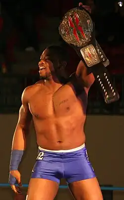On June 24, 2012, King's contract with ROH expired.[27][28] the July 5 episode of TNA's Impact Wrestling, King wrestled in a match, defeating Lars Only to qualify for the TNA X Division Championship tournament at Destination X.[29] Subsequently, ROH stated that they considered this an unacceptable "breach of his verbal agreement" and severed ties with him.[27] On July 8 at Destination X, King defeated Douglas Williams to qualify for the finals of the X Division Championship tournament.[30] Later that same event, King was defeated by Zema Ion in the final Ultimate X match, which also included Mason Andrews and Sonjay Dutt.[30] King returned to Impact Wrestling on July 26, when he was handpicked by TNA World Heavyweight Champion Austin Aries as the number one contender to Zema Ion's X Division Championship. King ended up losing the match following interference from Aries' rival Bobby Roode.[31] The following week, King teamed with Aries in a tag team match, where they defeated Ion and Roode, with King pinning the X Division Champion for the win.[32] Following the match, King was named the number one contender to the X Division Championship.[33] King received his title opportunity on August 12 at Hardcore Justice, but was defeated by Ion.[34] The following day it was reported that King had signed a contract with TNA.[35] On the December 6 episode of Impact Wrestling, King defeated Kid Kash and Zema Ion to become number one contender for the X Division Championship.[36] Three days later at Final Resolution, King failed in his title challenge against Rob Van Dam.[37] On the following episode of Impact Wrestling, King defeated Van Dam in a non-title match, pinning him with his feet on the ropes.[38] The following week, King teased tension between himself and Van Dam after he abandoned Van Dam in a tag team match against Matt Morgan and Joey Ryan.[39] On the January 10, 2013, episode of Impact Wrestling, King defeated Zema Ion to earn the right to face Christian York in a number one contenders match for the X Division Championship at Genesis.[40] However, three days later at the pay-per-view, King was defeated by York.[41] On the February 7 episode of Impact Wrestling, King unsuccessfully challenged Rob Van Dam for the X Division Championship in a three-way match, also involving Zema Ion.[42] Two weeks later, King received another shot at the X Division Championship, but was again defeated by Van Dam.[43]