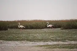 The lagoon is an important bird breeding ground. Ruddy shelducks, marbled ducks and Audouin's gulls inhabit the lagoon permanently, and many species migrate here in winter. Every year, about 20,000 birds stay in the lagoon area in the winter season.[3] The site has also been designated an Important Bird Area (IBA) by BirdLife International because it supports significant wintering populations of waterbirds.[4]