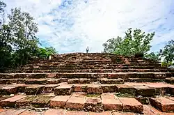 | The laterite stairs leading up to the temple base of the Wat Khlong Suwankhiri |