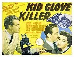 Kid Glove Killer is a 1942 American crime film, starring Van Heflin as a forensic scientist investigating the murder of a mayor. The B film, the feature-length directorial debut of Fred Zinnemann, was an expanded version of the 1938 Crime Does Not Pay short subject "They're Always Caught".