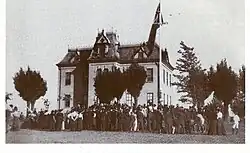 In Kincardine, as in most pioneer communities, one of the matters of primary consideration was the question of education. The children were at first educated at home, and then, in 1851, a public school opened. The rented frame building was on the river flats near the lake. The teacher, Mrs. Jane Nairn, had 66 students. The original school, Kincardine District High School, was erected in 1876 at the cost of $8,900 when the school opened, 80 students attended at the cost of $8.00 a year for in-town students and $10.00 a year for rural students.